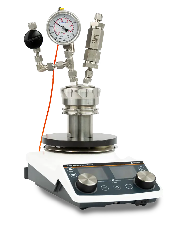 Die HiClave S Minireaktoren sind besonders geeignet für kleine Versuchsmengen von 25 bis 125 ml. Sie können mit Magnetrührplatten betrieben werden und erlauben eine Temperatur von bis zu 350°C und einen Druck von bis zu 150 bar.