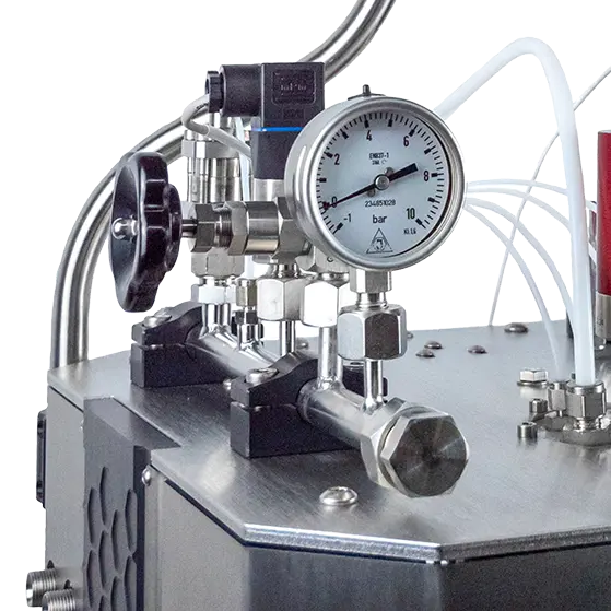 Ein Manometer, Überdrucksicherung und Druckentlastungsventil gehören zur Standardausstattung.