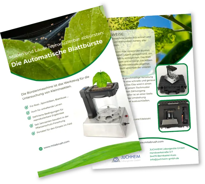 The mite brushing machine quickly and efficiently removes all mites from leaf samples of virtually any plant species.